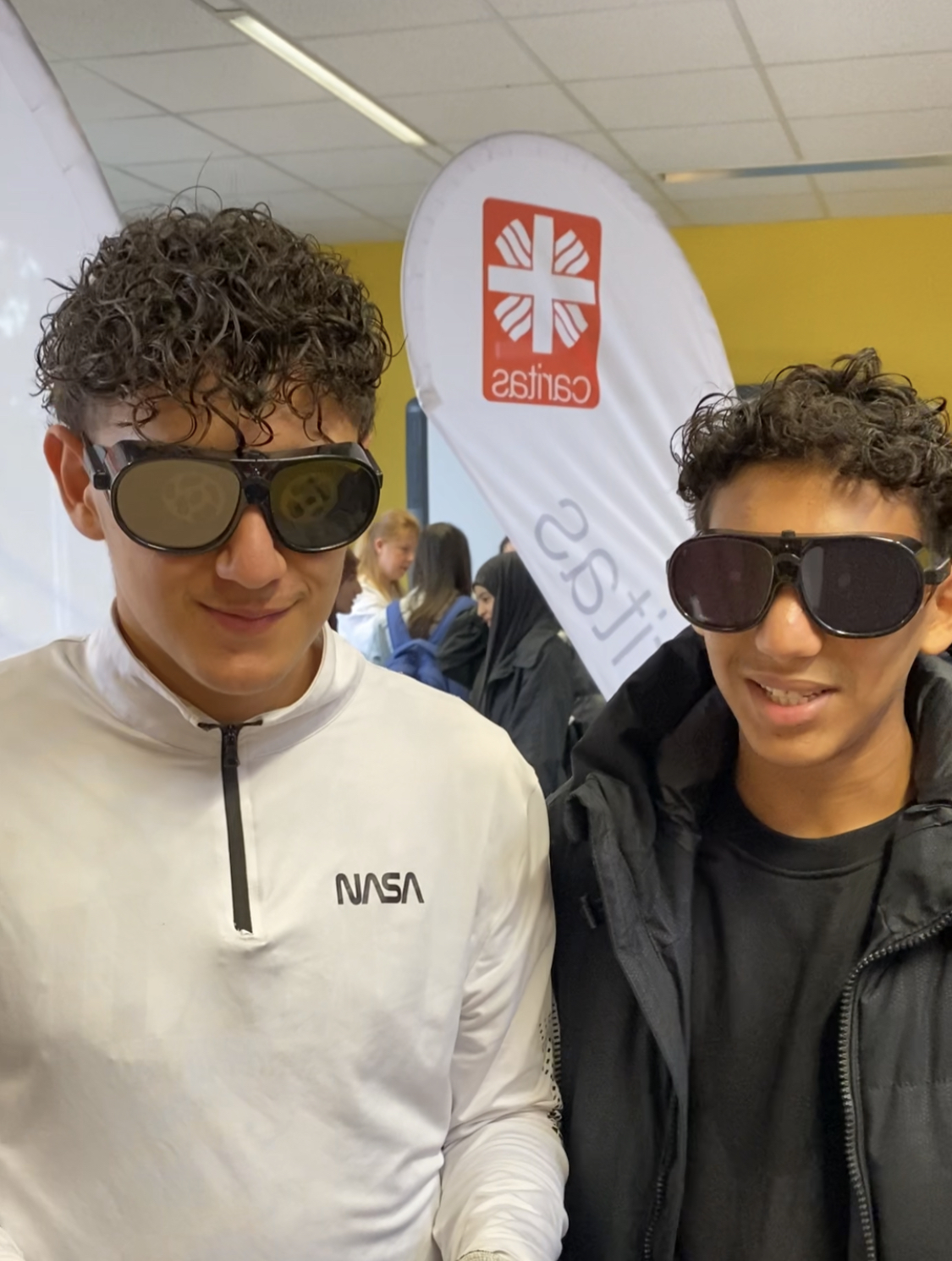Nicht nur Popcorn gab es als kleines Schmankerl am Stand – die Betreuerinnen boten auch Handmassage und Nagelpflege an. So konnten die Jugendlichen selbst erfahren, was die Betreuerinnen für die Pflegeheim-Bewohner*innen alles im Angebot haben: Neben gemeinsamem Kochen, Backen, Vorlesen, Tanzen und Singen wird dort eben auch ein kleines Wellnessprogramm in Form einer Handmassage oder einer Nagelpflege angeboten. Gut kamen auch die Brillen an, mit dem die Schülerinnen und Schüler altersbedingte Augenkrankheiten, wie den Grauen Star, simulieren konnten.